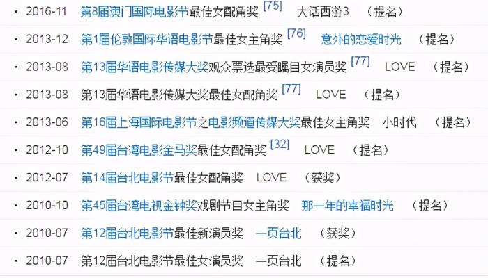 不过,等你翻开郭采洁的履历表,就会发现《小时代》之前的她曾经是台湾主流电影奖项的提名常客,24岁就获得了最佳新演员和最佳女配角的荣誉。