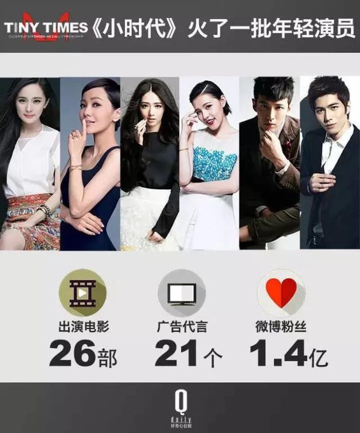 据统计,几位主演在电影上映之后接到的广告代言合计21个,微博粉丝合计涨了1.4亿。
