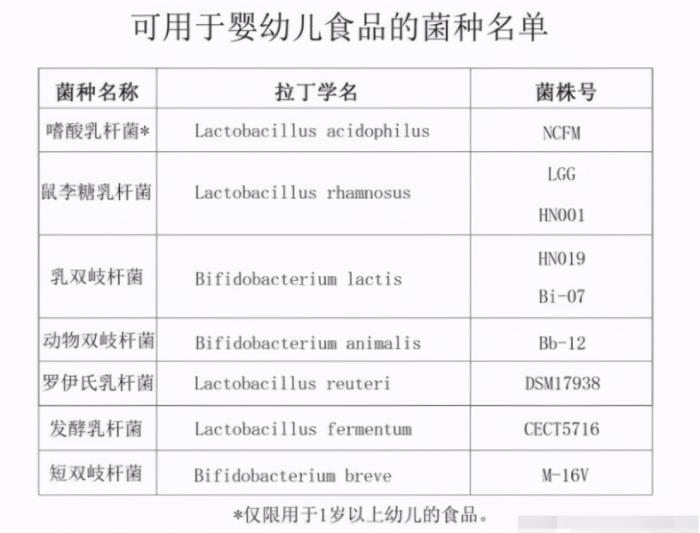 ① 看奶粉配方 选奶粉的时候,一定要看配方表,像是“生牛乳”“脱脂牛乳”这样成分的可以优先选择,添加的益生菌可以参考下表: