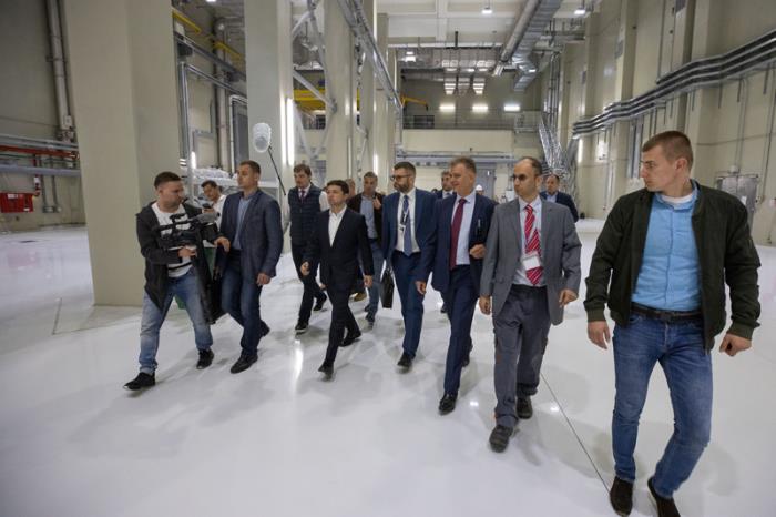 7月10日,乌克兰总统泽连斯基进入切尔诺贝利核电站新掩体的内部。(图片来源:新华社发 乌总统办公厅供图)