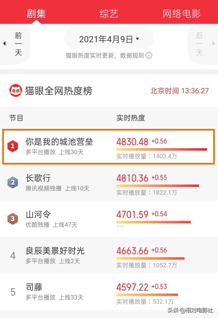 且伴随着大结局的播出,《城池营垒》的热度,也是再次快速攀升。一举“击败”了《长歌行》、《山河令》等热门对手,而强势登顶国产剧热度榜冠军之位。