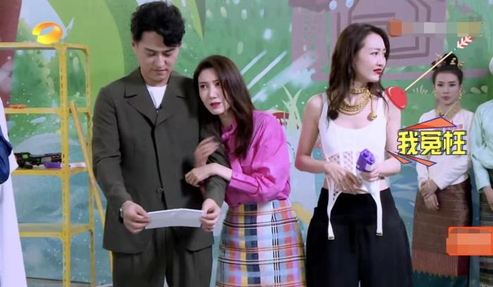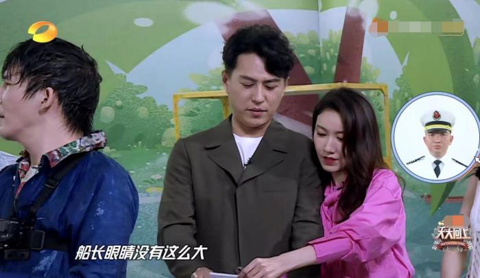 在节目的《我是卧底》游戏环节,主持人和嘉宾都在积极讨论推理。这时候靳东手上拿起了一张关键性卡片,身旁的高露即刻凑上去,两人肩膀贴着肩膀,高露用头靠在靳东肩上。