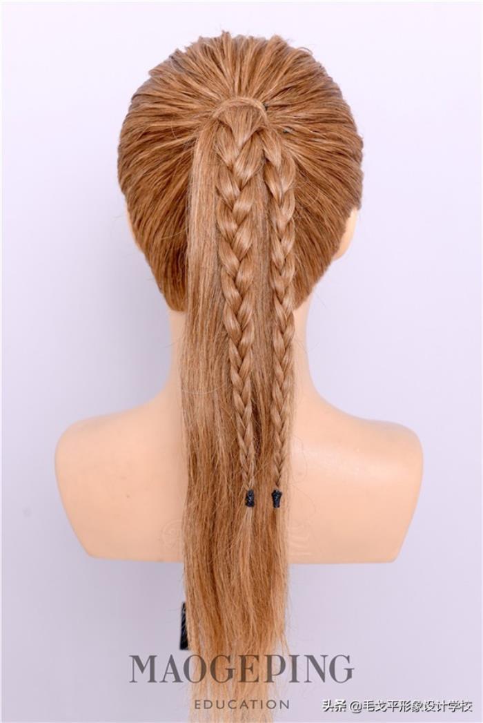 步骤三:在三股辫旁再取适量头发编成三股辫,注意发量均匀。