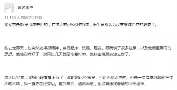 而有经验的人会知道,这是病人向亲人诀别的信号。