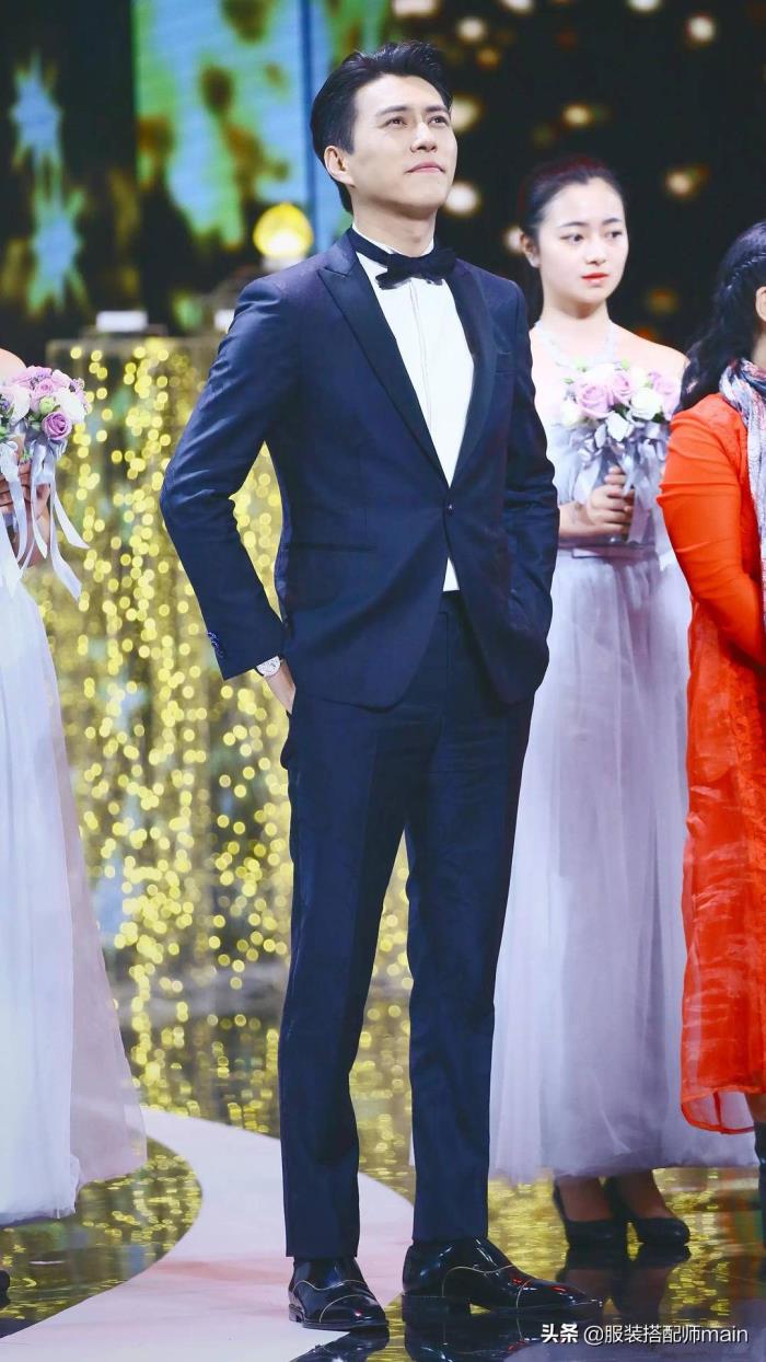 靳东虽然很少参加综艺,但是只要一露面他必然是西装革履的模样。酷爱穿西装的靳东真的配得上绅士男这个称号,深蓝色西服不似黑色中山装那么严谨,翻领配上蝴蝶结领带的设计让他看上去休闲又慵懒,惬意中带着认真,正式中又能带给人一种玩味。