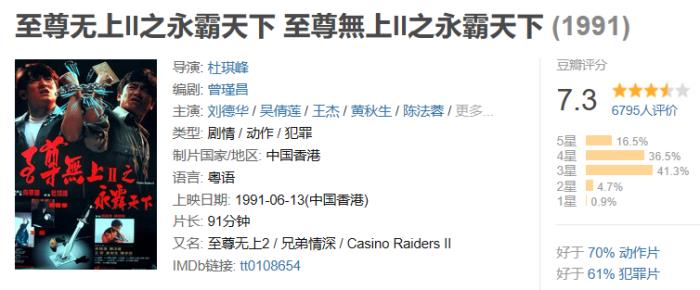 而今天皮哥要推荐的这部,就是由杜琪峰导演,王杰、刘德华、吴倩莲、陈法蓉等人主演的一部非常具有港片特色的赌片——《至尊无上Ⅱ之永霸天下》。