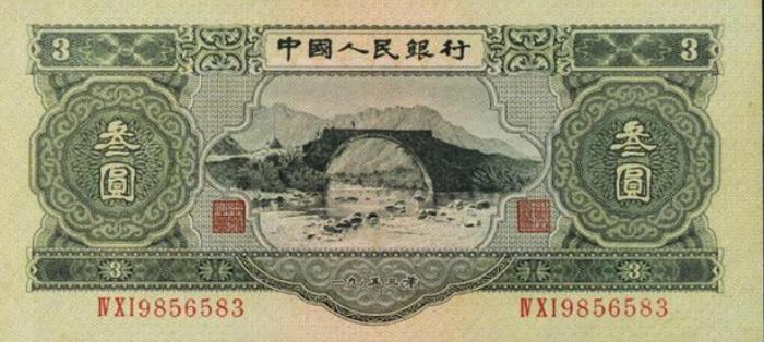 第一套人民币共12种面额,62种版别,它的发行与中国人民银行的成立相伴而行,也为新中国成立初期经济恢复发挥了重要作用。该套人民币上的汉字“中国人民银行”由董必武题写,主题设计选择解放区工农业生产的图景,包括牧羊、犁田、推煤、经纱等,生动展现出新中国成立之初的政治、生活、社会和文化状态。因题材多样、种类多、差别大,带有明显的战时特征和过渡性。