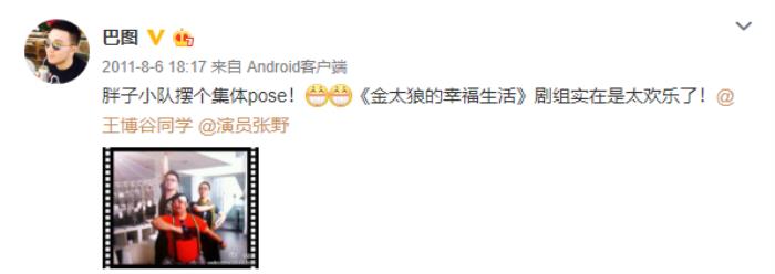 而巴图在社交平台第一次提到王博谷,则是2011年二人一起合作出演《金太狼的幸福生活》。除此之外,两人还合作了《李春天的春天》、《妈妈的花样年华》。