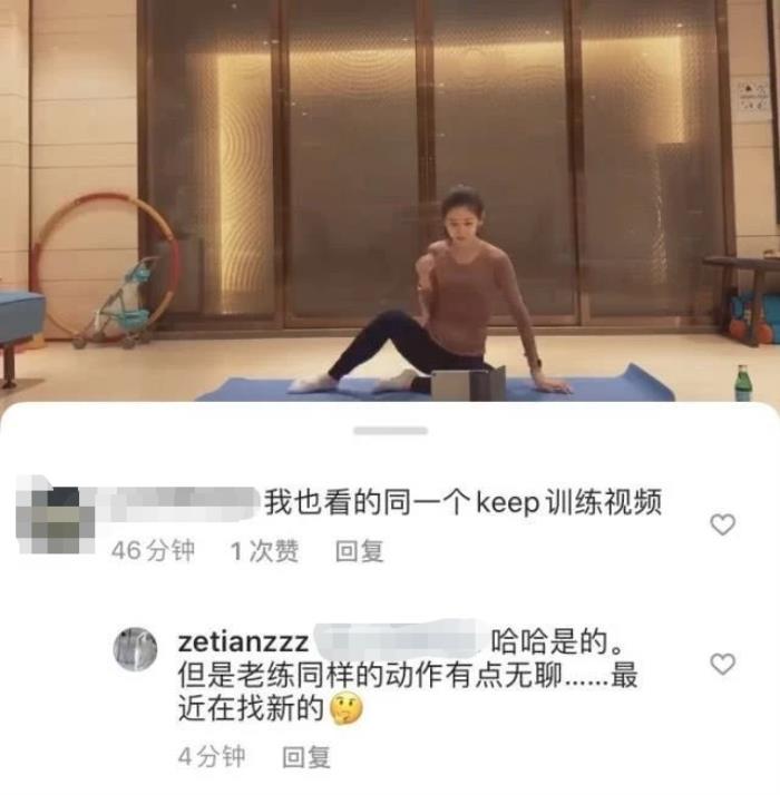 视频晒出后,有网友发现自己与章泽天做了同款运动教程,章泽天还回复道:“老练同样的动作有点无聊,最近在找新的。”看来章泽天已经把健身变为生活的一部分了,相信过不了多久,目标就能实现。