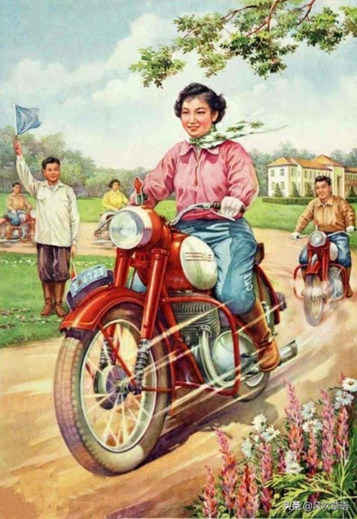 《学开摩托车》1958年10月 华西岳作。