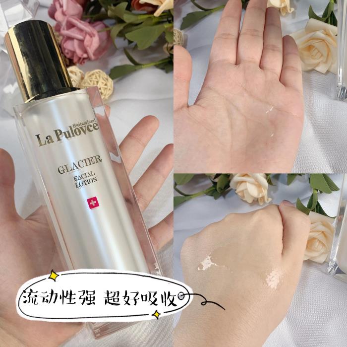 本人一直在使用的拉普瑞斯家的冰晶水,它是一款精华水,质地介于水和精华之间。我在使用水这一步骤的时候是非常“阔绰”的,一般会拍上三道,之前使用的化妆水质地太稀薄,导致我皮肤还是很干,自从用了这款冰晶水,皮肤状态好了很多,T区不会发干,刚上脸的时候比较滋润,但是经过按摩后,吸收速度很快,刚用完就可以明显感觉到皮肤的饱满感!