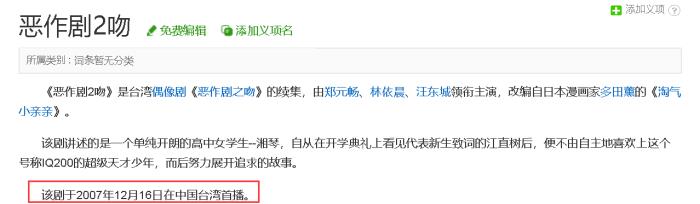 2005年《恶作剧之吻》在台首播,单纯开朗的袁湘琴与高冷聪慧的江直树的爱情吸引了多数人,成为当时最耀眼的偶像剧。