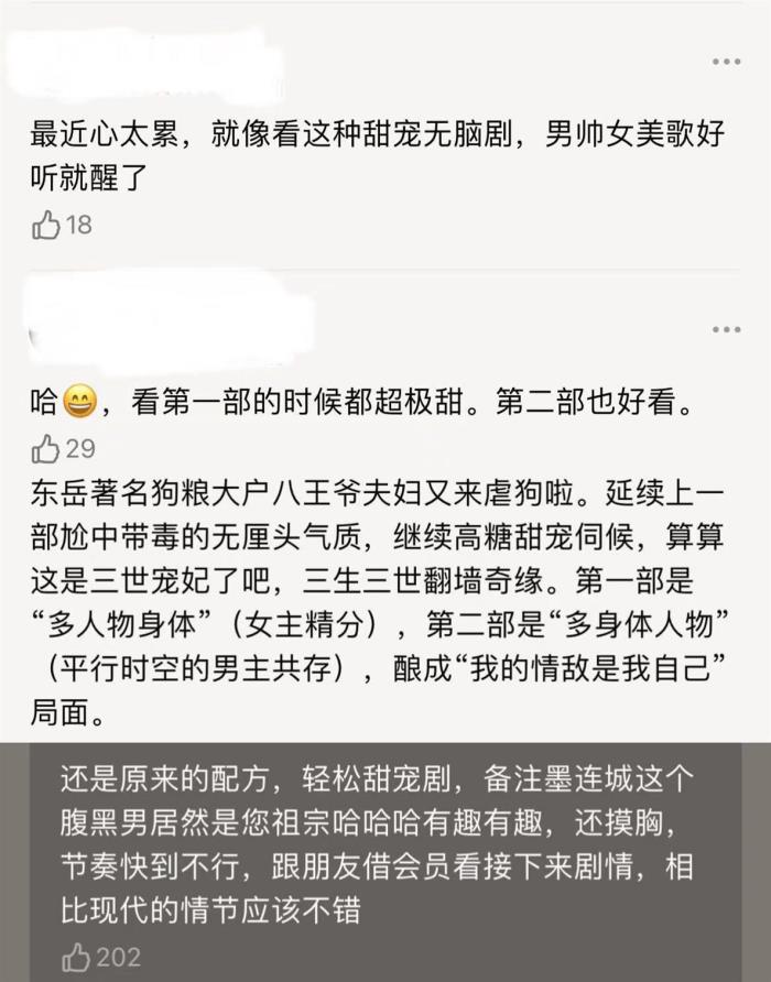 可惜很多电视剧都败在续集上。就拿《琅琊榜》来说,第一季可以封神,第二季却风评不高。《欢乐颂》亦是如此,第一季好评如潮,第二季却都是吐槽。