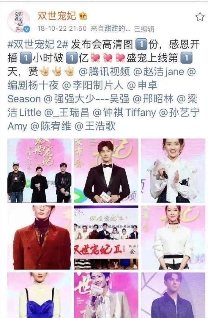 《双世宠妃》第一季上线18个小时,收视率破亿。