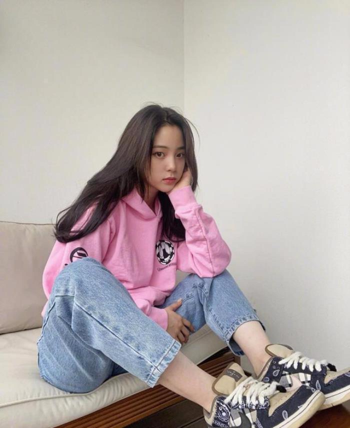 下身方面,欧阳娜娜选择到是经典牛仔裤,牛仔裤被成百搭下装,配上这件粉红色卫衣,也能给这套穿搭加分,细脚的设计更能够凸显身材曲线,年轻的果然是最美的。