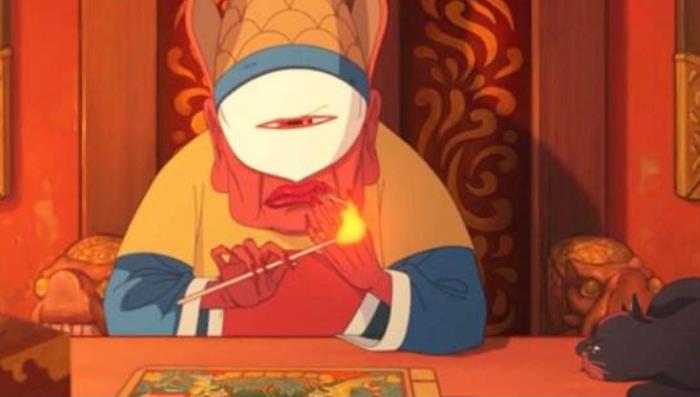 湫呢,他拿着那颗球,直接就上了摆渡船。不止如此,摆渡的人还向着湫行了礼。这都说明了湫和椿并不是一个级别的。大鱼一中讲述的是椿为了报恩于鲲不顾一切的故事,鲲是椿的劫难,而椿是湫升华的关键。湫的奶奶是整个寨子中最尊贵的人之一,因为只有她才能够召唤水柱连接凡间和他们所住的世界,但是湫因为知道了灵婆所说的自己的身份,才会有后面那一幕。他偷出了龙王面具以及手杖,以一个还未成年的身体去打开了道路。