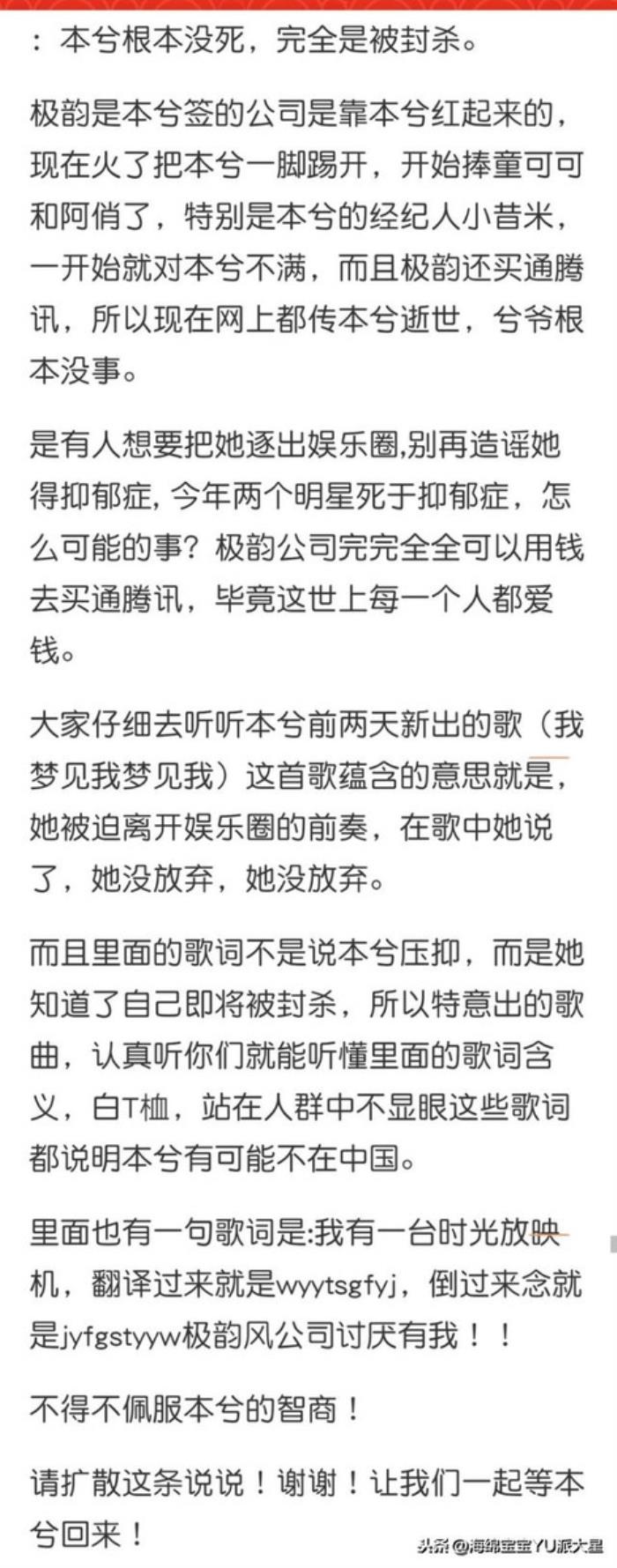 最近在抖音上看到有人发本兮的事件,有许多网友对本兮的死还是一头雾水,她到底是真死还是假死,小编查了许多资料对此也是很懵逼有人说死了死法包括(坠楼,抑郁症,车祸)真是千奇百怪无所不有,也有人说没有死只是被封杀..