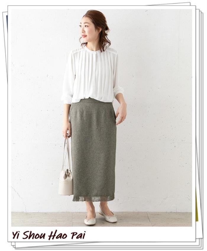 缎面百褶裙看起来很优雅,而且很有光泽!搭配开衫,它成为一种偏保守的轻熟风格穿搭。