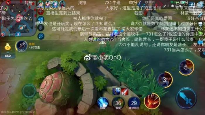 今天林蒙在11点45分左右,在玩一局娜可露露的时候,假装打电话吹逼,说自己的兄弟在731部队当营长,然后马上被超管警告并停播。