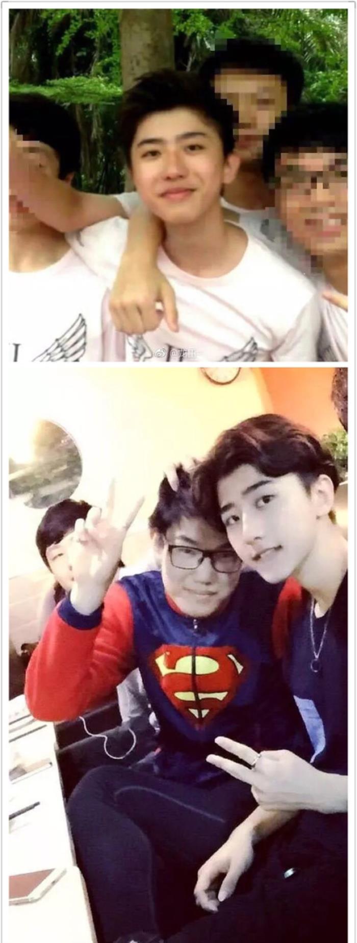 长得确实很清秀很白嫩了,和现在差别也不大,就算不是校草,也应该是班草吧,看打扮,应该是班上比较爱漂亮的那类男生了吧...