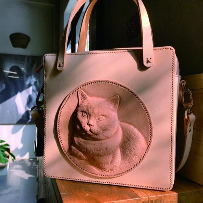 沮丧中也可以开出花来,这才是最文艺的生活态度。几年前的一次年度旅行,碧空去了土耳其,凌晨起来拍星空,最后一堆噪点,根本没有图像。失望之余,好在热气球拍摄治愈了他,不管是垂直的视角,还是看超级逆光的日出,都让他记忆深刻。摄影给了他认识人生的别样视角:“看看风景也不忘看看人,同在地球村,差别真的不大。一样的年轻衰老,一样的结婚生子,一样的贫穷与富裕,一样的玩手机忘记时间,一样的无处不在的球迷,一样的虔诚的人们……扫街就是观察世相。” 艺术的本质是创造另外一种生活。所谓专注,就是一种心无旁骛、孜孜以求的心理状态,正是这种状态,让人可以暂时性地超脱眼前的生活,以艺术的方式建立一方属于自己的心灵自由领地。 方方正正的包体、圆形的拼贴装饰、高冷优雅的肥猫……看似对立的元素出现在同一只皮包上,却是意外地和谐,碰撞出了别样的趣味。这是南京皮匠阚士亮手工制作的皮包,猫的原型是他朋友家的一只蓝猫,他用“阳雕”的方式将猫咪一笔一笔刻在牛皮上,阴暗对比强烈、层次分明,不仅完美还原猫咪的神态与动作,就连胡须与毛发都清晰可见。