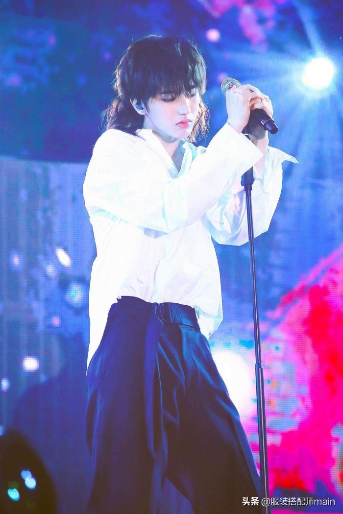 若是解掉领带换成一条高腰的阔腿裤,那白衬衫的他又是另一种模样了~同样是宽松款,将整个前端都塞紧裤腰里,原来男生也有小蛮腰!这鲻鱼头也是红极一时的,多了几分魅惑感!蔡徐坤这出道两年真的是成长了不少呢~