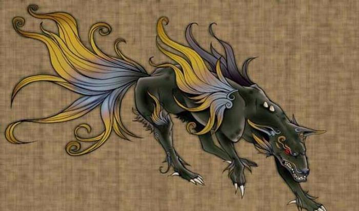 九头九尾,长得就像老虎狐狸和狮子的混合体。长得这么磕碜也就算了,就是不知它和蛊雕到底有什么渊源,声音都像婴儿一样。