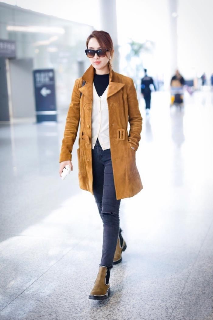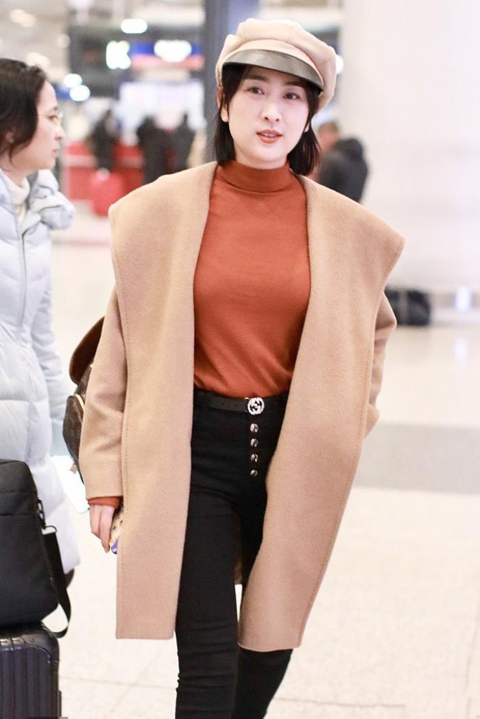奔四的女人们在穿搭的时候,要懂得如何利用配饰或者妆容,增加整体造型的精致程度。马苏的这一身造型虽然都是采用基础款单品,但却与细节环环相扣,焦糖色的针织衫与焦糖色的妆容相互呼应,卡其色的大衣则是与卡其色的贝雷帽相互呼应,尽是搭配小心思,给人一种很清新温柔的感觉,不仅完美修饰了身材,也让气质满分了起来。