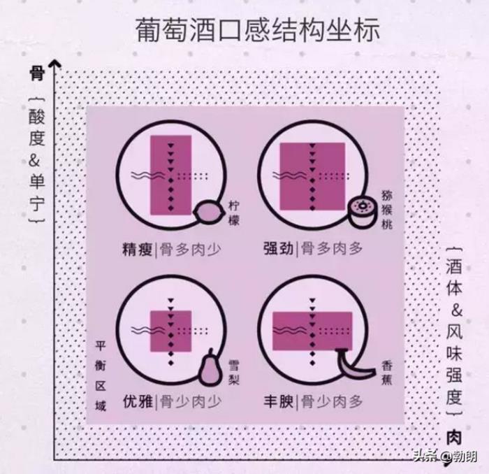 浓郁度——就像生草莓和完美成熟的草莓所呈现出的芳香度是不一样的,葡萄酒也会有如此浓郁度的差别;复杂度——简单的葡萄酒可能只有果味,而随着酿造工艺和陈酿时间的不同,葡萄酒会呈现出更多层次的香气;平衡——平衡性极佳的葡萄酒如同一个具有完美身材的人,肥瘦刚好,高矮刚好,不弯腰驼背,不缺胳膊不少腿,五官端正,无先天性残疾;余味——葡萄酒吞咽之后在口中余留香气的时间长短。然而这些感官则是需要经过一定的训练才能判断准确。