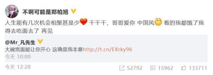另一个表示,“哥哥爱你,中国风,看的我都饿了我得去吃面去了。” 连思聪欧巴都忍不住怒赞说,凡凡很man! 但凡凡这次不仅是很man,还很clever。 要知道,咱们凡凡当年打舆论战也是刚过的。