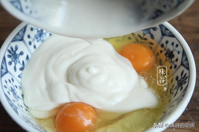 倒入酸奶,酸奶要用那种浓稠的,别用错了哦。
