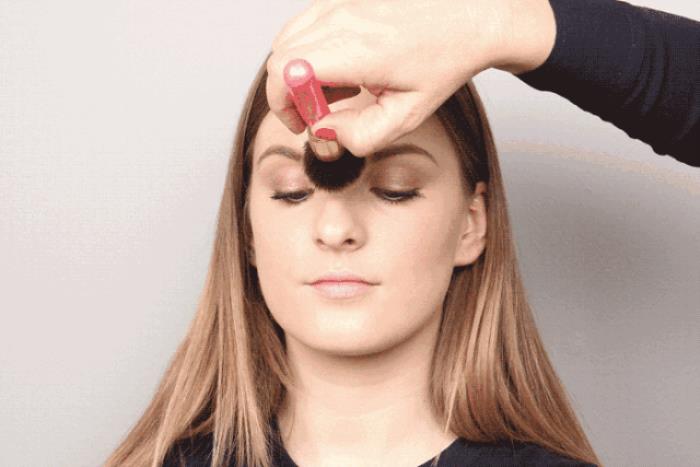 扇形刷的形状比较细长,可以用来扫一些精细的部位,例如眼下的高光或者腮红