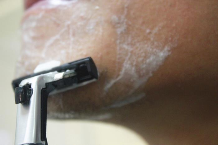 最后,讲个刮胡子时会遇到的一个问题。有的时候,长胡子的地方会冒出个小痘痘,在刮胡子的时候,会比较麻烦,一不小心就会刮破了。这种情况,建议不要刮长痘痘的地方。因为如果不注意把痘痘刮破了,容易导致出血,感染。毕竟你的刮胡刀可不一定干净。