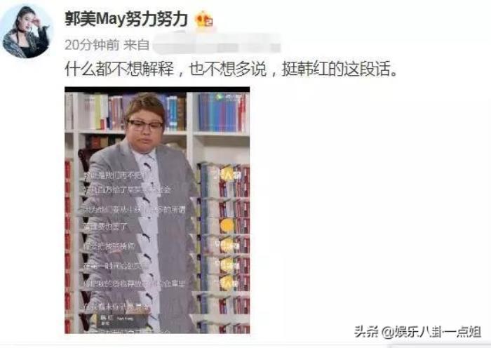 看到这样憔悴的韩红,喜欢和支持她的人都表示心疼,其中有一个人引起了我们的关注,就在韩红发出报平安微博后,郭美美随后不久也发了一条微博,她发文称”不想解释,不想多说,但会力挺韩红“!并配了一张韩红早年间揭露慈善黑幕的一段话。