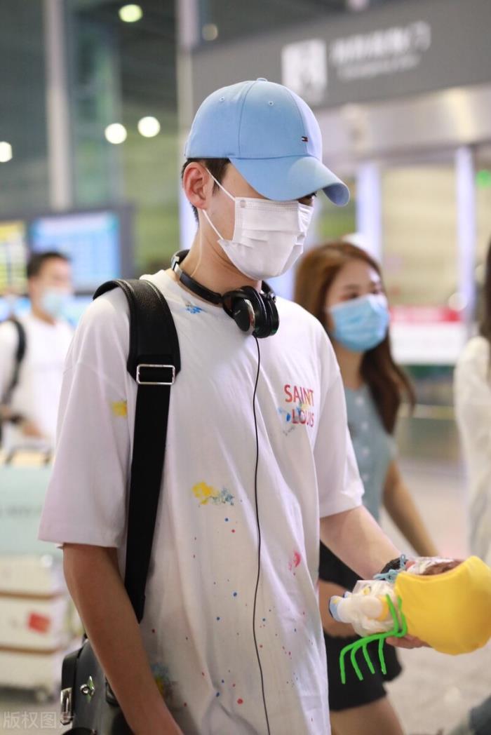 2021年7月11日,张翰现身上海虹桥高铁站,他戴着蓝色棒球帽和白色口罩,身穿白色印花T恤搭配黑色短裤,粉丝送的卡通玩偶十分形象。