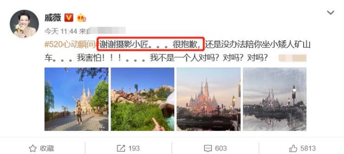 5月13日中午,戚薇在个人社交账号上更新动态,原来是一家三口去到迪士尼游玩,但戚薇分享出来的不是喜悦,而是向女儿lucky道歉:"谢谢摄影小匠,很抱歉"。先感谢后道歉,这是怎么一回事?