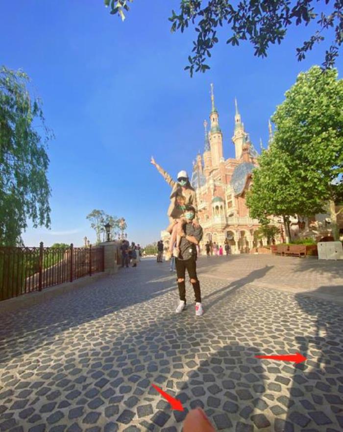 在戚薇晒出的照片中,戚薇坐在李承铉的肩膀上,举起胳膊比耶。仔细观察照片的下方,有娇小的手指露出来,地面上的影子其中还有一个小巧的身影,加上仰视的角度,无疑就是翻版小戚薇lucky了。