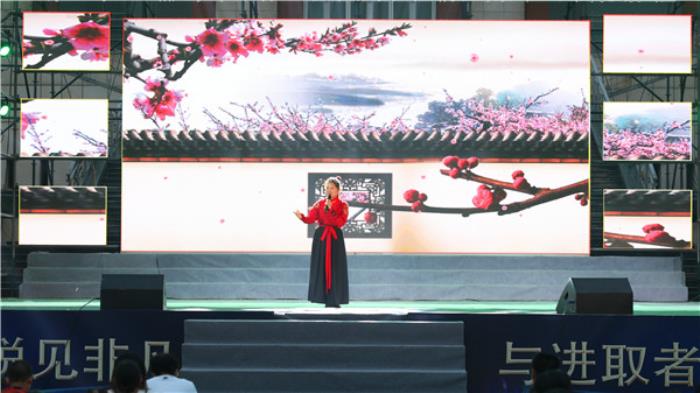 晚上19点,主持人们在活动现场分别表演了《再别康桥》、《木兰辞》、《荷塘月色》等经典作品,现场主持人饱含深情的朗诵,让人再一次感受到文学作品的博大与精深,带给观众直抵心灵的震撼。主持人还与现场观众代表互动一起诵读《黄河入海流》等文章,一同体验经典的不朽魅力,精彩的节目得到了现场观众一阵阵热烈的掌声。