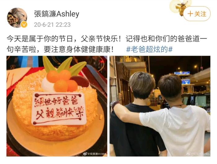 另一边张镐濂会在父亲节给张丹峰送上蛋糕,配字:绝世好爸爸。