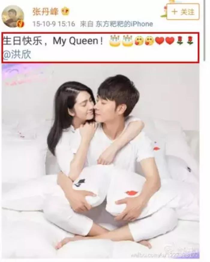 到2015年,洪欣生日当天,张丹峰只在社交平台简单送了一句祝福语。