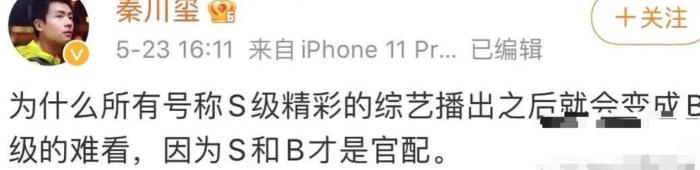 事态发酵后baby经纪人发文称,所有号称S级的综艺播出后都和B级一样难看,因为S和B是官配,疑似在内涵跑男。