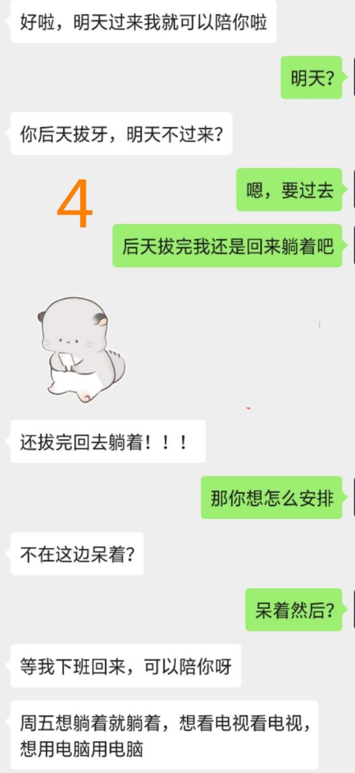 本来我要拔牙,准备去他那睡,结果我准备过去的时候,他又告诉我女儿昨晚是跟他睡的。