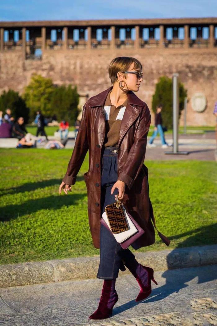 直筒牛仔裤面料比较挺括,塑行效果极强,搭配皮质感的风衣,显的整个人看起来十分的精神。个子不高的女生,搭配一双尖头高跟短靴,显高显瘦的同时,又很时髦。直筒裤比较宽松,能很好的修饰腿型,没有阔腿裤的那种膨胀感,即便腿比较粗的宝宝们,依然是可以驾驭的。