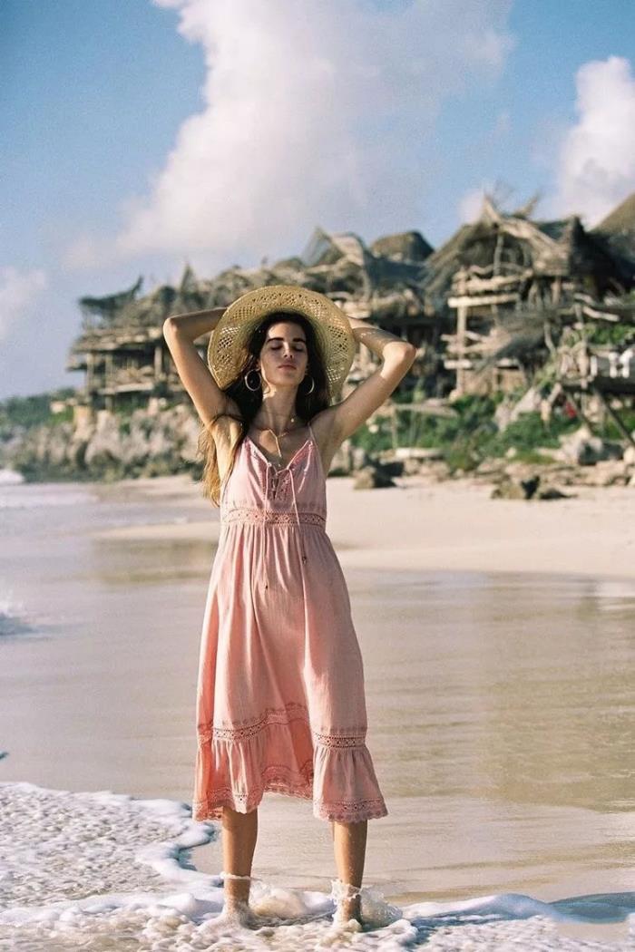 暖色调中的白色有米白色、象牙白、以及裸白色三种,其中米白色的服装最好驾驭,还很显温柔感,既清新优雅又不会形成很强烈的肤色对比效果。在炎热的夏季里,用一身暖白色的裙子做搭配再合适不过了。