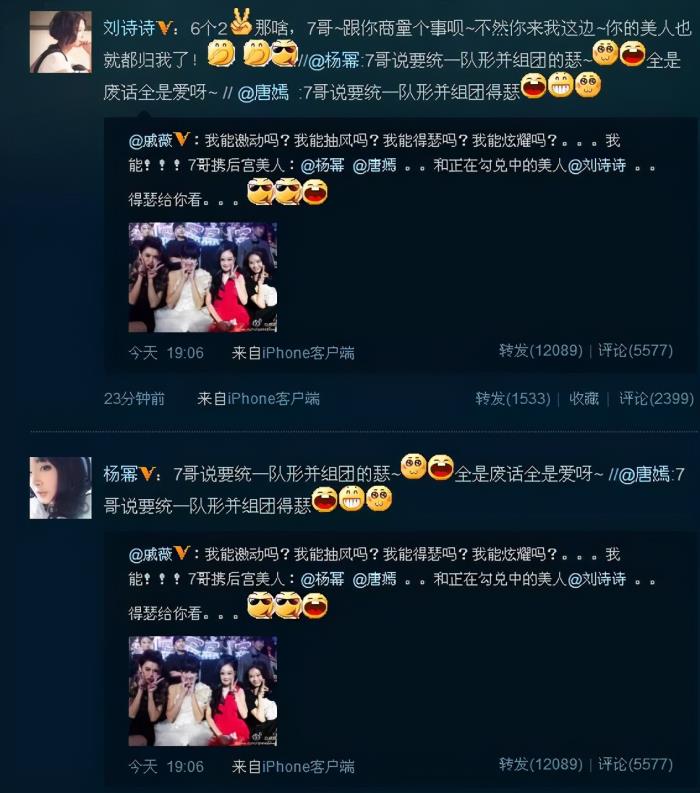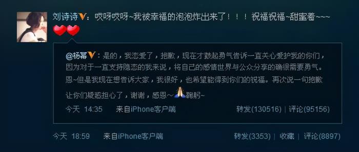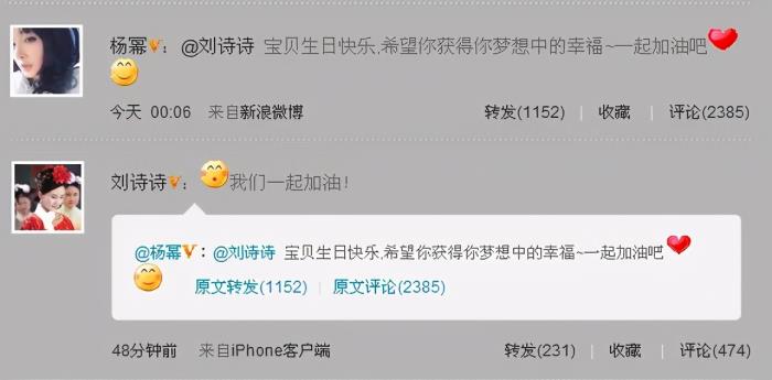 再之后,刘诗诗吴奇隆,杨幂刘恺威分别举办婚礼,都没有邀请彼此。从此微博上再也没有过杨幂替刘诗诗掐点送生日祝福这种事了。