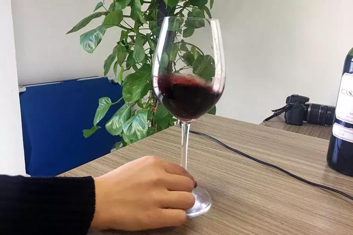 当然,还有一种更为简单的,将酒杯放在桌上,握住杯柄轻轻画圈摇动,也很安全。