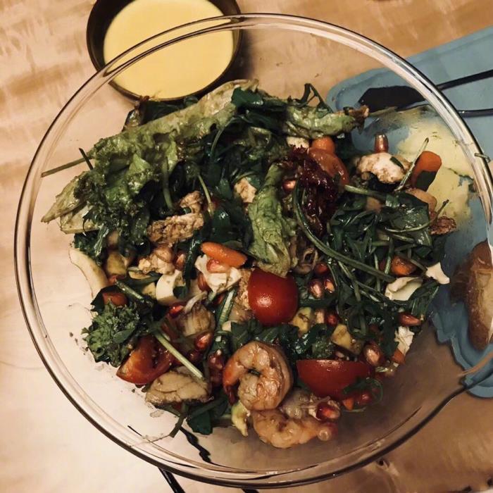 郭麒麟每天下午7点前吃晚餐,方便睡前有充足的时间消化。晚餐包括焯水的蔬菜、新鲜水果,克数控制在七八分饱的量,淋入麻油或者橄榄油调味,不放盐。因为长期吃素对身体有害,郭麒麟每周还吃几块水煮鸡肉、牛肉、清蒸鱼补充营养。