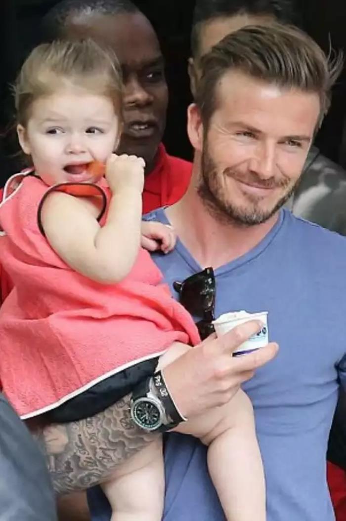 我们都知道足球明星贝克汉姆算是足球场上的“铁血硬汉”了吧,一脚弧线球能让绝大多数的所谓“门神”怀疑人生。可是呢,对于自己小女儿“小七”那是宠溺的不得了。贝克汉姆是时尚界的宠儿,平日里非常在意自己的穿着打扮,可因为小女儿走在大街上也要让小七骑在自己的脖子上,哪怕把自己干净的衣服弄脏弄出褶子来。这就是女儿奴的真实写照吧。