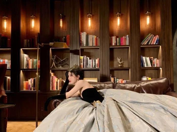 鞠婧祎身穿礼服长裙头戴皇冠,还戴着黑色大手套,左手托着自己的俏脸,大秀自己的香肩,肌肤娇嫩如雪,这样的美女还是很有魅力的。