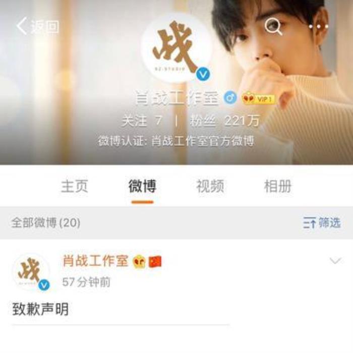 10月24日凌晨,肖战工作室在微博发布致歉声明。声明表示,10月23日晚,肖战及工作人员抵达机场,在登机前由于受到个别人员影响导致登机受阻,航班延误。肖战第一时间项工作人员能表达想亲自向乘客致歉的意愿,但经过考虑,为避免二次影响,肖战请工作人员代为出面致歉。声明强调影响到他人出行并非肖战本意,并再次向同航班旅客郑重致歉。同时工作室也郑重呼吁,不提倡任何形式的接送机行为,以免干扰他人正常出行